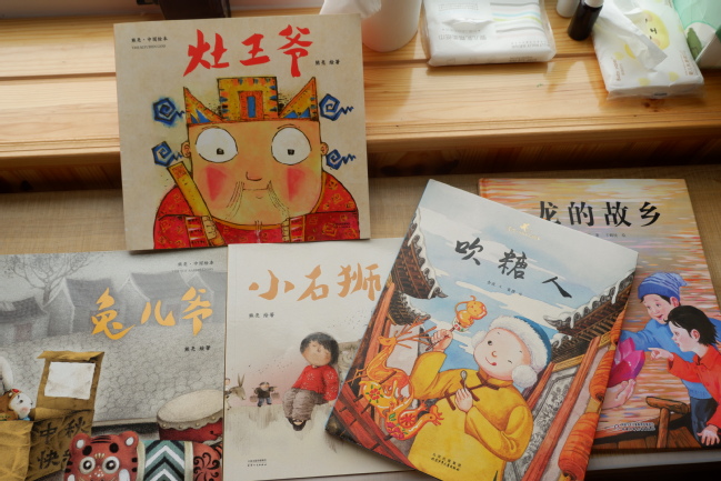 志愿者精心挑选了一系列体现中华优秀传统文化以及民俗的绘本,例如《灶王爷》《兔儿爷》等。这些绘本富有趣味的故事情节和精美的画面,不仅有利于激发幼儿的阅读兴趣,也能够使幼儿获得积极的情感体验。绘本故事的讲述,帮助幼儿学习优秀精神品质,增加了幼儿的生活经验,使其对身边传统节日的习俗以及民间有趣的习俗有了进一步了解,将历史文化及习俗与现代生活相联系,体会今朝血脉相连的感情。
