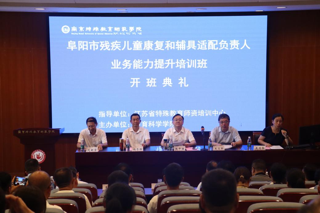 8月12日上午,“阜阳市残疾儿童康复和辅具适配负责人业务能力提升”培训班在栖霞校区开班。阜阳市残联党组书记、理事长张中强,阜阳市纪委监委派驻纪检监察组组长杨崇辉,阜阳市二级调研员桑汤,阜阳市残疾人康复研究中心主任李度,阜阳市残联机关工会主席唐亮,威廉体育党委副书记、董事长王立新,威廉体育党政负责人等参加开班仪式。