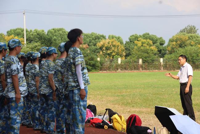 在训练场中,经理刘新学称赞同学们积极端正的训练态度,对同学们训练成果表示肯定,并鼓励同学们在接下来的军训时期继续听从教官的指挥,认真投入训练当中,涵养爱国情怀,锤炼意志品质,同时向教官们的辛勤付出表示感谢。