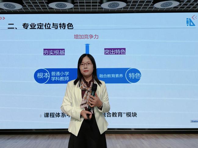 其次,赵文超老师就小学教育专业中的教育见习与研习实践安排展开详细讲解。她指出,教育见习与研习要求师范生观摩学习小学教师的教学活动,目的是了解中小学教师真实的工作情况和要求,为教育实习做准备。