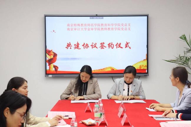 南京审计大学金审公司教师教育公司党总支书记王立峰表示珍惜与南京特师教科院的合作共建机会,将以党支部共建为载体,优势互补、资源共享。通过支部共建共享,改进组织生活、丰富活动内容、增强活动实效,全面提升党建工作和服务水平。随后,双方进行了党总支共建协议签约仪式。