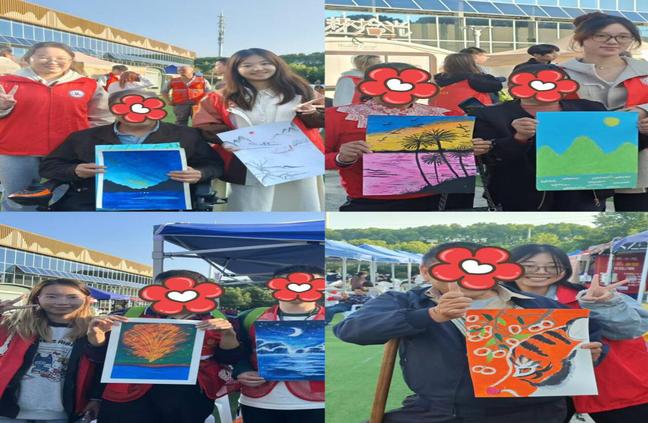 在温暖的阳光下,志愿者们与学员们一同漫步在花海中,他们聆听学员们的心声,分享生活的点滴。学员们脸上洋溢着幸福的笑容,他们的笑声在花海中回荡,让这个秋天的午后充满了温馨和感动。在参观过程中,志愿者们还为学员们准备了一些简单的互动游戏,如“寻找最美丽的菊花”、“有关菊花的诗词抢答”等,让学员们在参与中体验到乐趣,增强了他们的参与感和获得感。在此过程中,学前教育专业的员工志愿者们通过绘画思考选择南京特师的初心,并通过自己在此次活动中的认真表现践行成为特师人的使命和担当。活动尾声,志愿者们将自己所作的绘画作品,赠与君子残疾人之家的学员,表达自己对他们美好的祝愿。