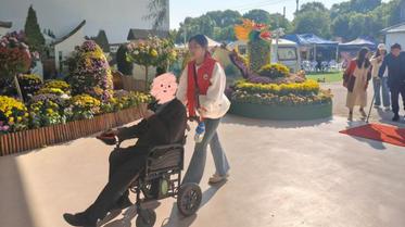 活动当天,阳光明媚,菊花盛开。志愿者们早早来到了残疾人之家,他们带着满满的热情和关爱,迎接每一位学员。在确保每位学员都得到妥善的看护后,一行人乘坐专用车辆,踏上了前往湖熟菊花园的旅程。在菊花园内,志愿者们不仅提供了细致的看护服务,确保学员们的安全,还担任起了讲解员的角色,他们耐心地为学员们讲解菊花的种类、生长周期,以及菊花在中国文化中的美好寓意。菊花以其坚韧不拔、高洁清雅的品质,被誉为“花中君子”,象征着坚强和高洁。志愿者们还特别准备了一些关于菊花的诗词,与学员们一同赏析,让学员们在欣赏菊花的同时,也能感受到中华文化的博大精深。