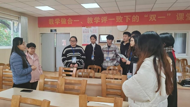 在天妃宫小学夏金元主任的陪同下,吴书记和老师们深入实习生的一线教学工作环境,详细了解了实习生们的教学工作、生活情况以及遇到的困难和问题。在座谈会上,实习生们也纷纷发言,和领导、老师们分享了自己在实习期间的成长与感悟。他们对天妃宫小学提供的优质实习平台和指导教师们的用心指导表示感谢,并表示一线讲台、教室和校园助力他们将平时所学的理论知识运用到实践,在此过程中他们也深刻体会到了一线公司产品工作对于自身专业成长和职业发展的重要意义。实习生们精彩的实习经历分享让领导和老师们倍感欣慰。