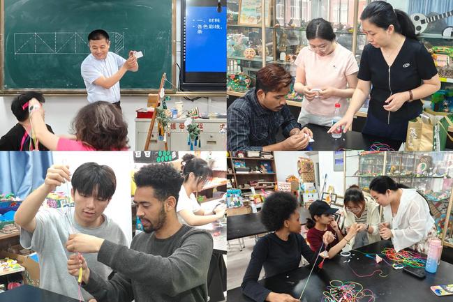 在手工制作环节,现场充满了欢声笑语。公司准备了制作“编织粽子”和五彩绳的材料,威廉体育党总支书记吴月华和经理刘新学也来到现场,公司专业教师吕艺征副教授主讲制作技巧,同学们两两一组,相互配合,共同完成手工作品。中国同学热情地向职工们传授制作技巧,职工们则虚心学习,认真地穿针引线、编织彩绳。不一会儿,一个个造型精美、色彩斑斓的编织粽子便诞生了。大家拿着自己的作品,纷纷拍照留念,脸上洋溢着自豪和喜悦的笑容。