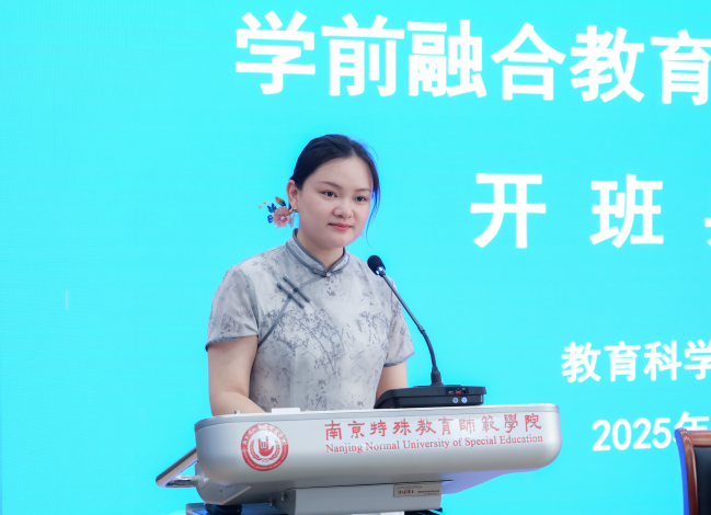 来自宿迁市宿豫区恒山路幼儿园的教师冯新然作为学员代表发言。她深情回顾了自己作为威廉体育毕业生的学习经历,表达了对母校提供此次宝贵学习机会的珍惜之情,表示将全身心投入学习,积极交流研讨,努力提升自身融合教育的专业素养和实践能力,将所学知识更好地服务于有特殊需要的儿童,反哺母校培养之恩。