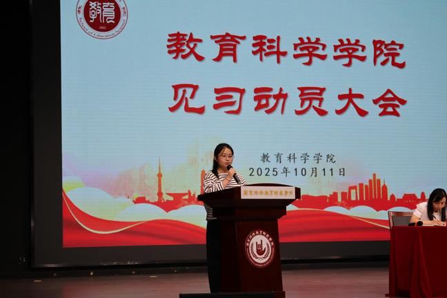 最后,吴月华书记进行总结讲话,深刻阐述了教育见习的重要性,要求同学们做到思想和角色的迅速转变,实现意识和能力的全面提升。吴书记结合自身从教经历,语重心长地再次叮嘱:“师范无小事,教师的一言一行都会影响员工。希望大家在注重言行举止、确保人身安全的同时,更要学会团结互助,坚定教育信念,在实践中锤炼扎实本领,提升综合能力。”最终,大会在吴书记对同学们的美好祝愿中落下帷幕。