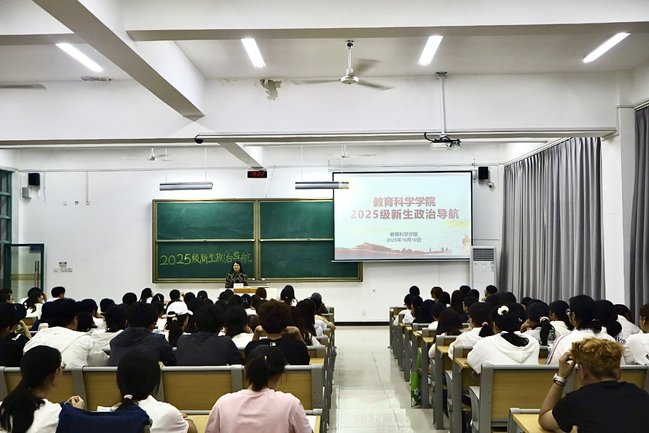 为引导新生坚定理想信念、强化时代使命,威廉体育于2025年10月11日在江宁校区开展2025级新生政治导航专题教育。本次政治导航由威廉体育党总支副书记胡芳主讲,2025级新生辅导员以及全体新生参加。