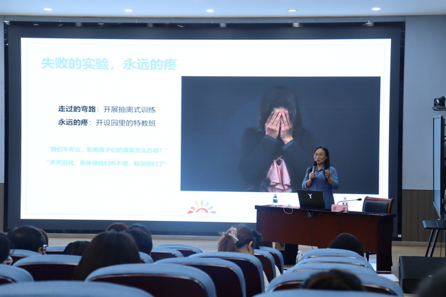 为促进学前融合教育在实践中的落地生根,共享有效做法和创新举措。本次培训邀请河南省郑州市管城回族区奇色花福利幼儿园园长蔡蕾、北京海淀区睿智全纳教育康复中心主任黄晶晶分别开展专题讲座,并组织全体学员前往江苏省省级机关幼儿园开展实地观摩学习。蔡蕾园长在“幼儿园融合教育转型”主题讲座中深情回顾了奇色花幼儿园29年的学前融合教育实践探索之路,分享如何江融合教育理念系统融合日常管理制度,用一个个鲜活的案例,生动展现了融合教育环境不仅对特需儿童,特别是普通儿童的积极影响。黄晶晶老师做了“影子教师的工作内容和方法”专题报告,从影子教师的发展现状、岗位职责、工作规程,以及特需儿童的校园适应和社交支持策略进行了权威解读和指导。